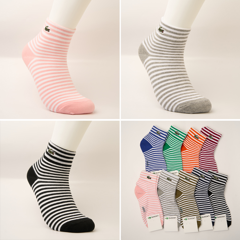 라코스테 스트라이프 컬러 단목 양말 (여성)