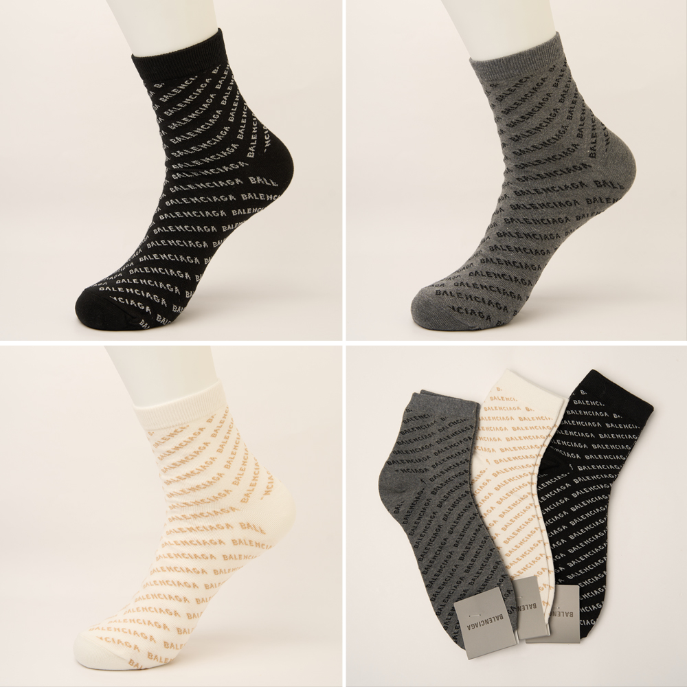 발렌시아가 로고 패턴 중목 양말 (남여공용)